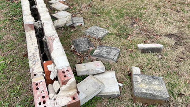 Vandals damaged a section of the war memorial in the Town of Keysville this week, tearing apart part ...
